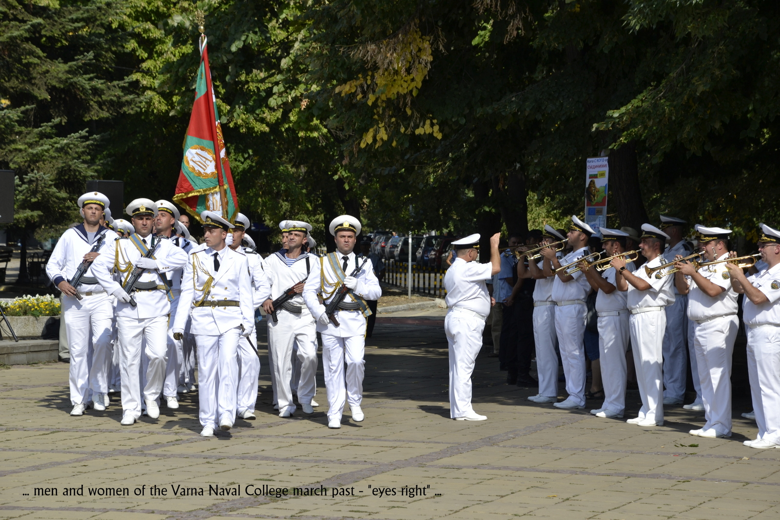 Following the address the band of the Bulgarian Naval College struck up as the honour guard presented arms. The participants and spectators knelt in respect as the anthem was played.